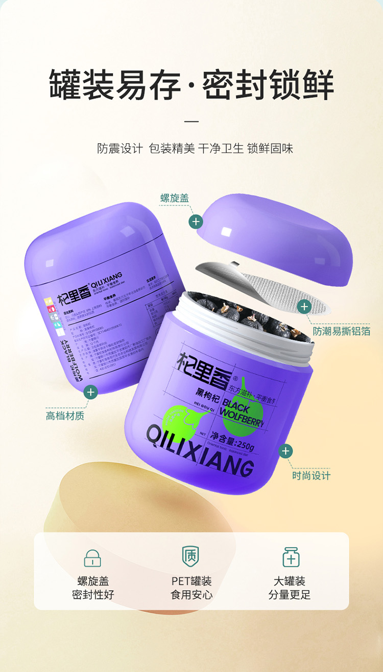 杞里香 圆罐2号黑枸杞250g中果 011038