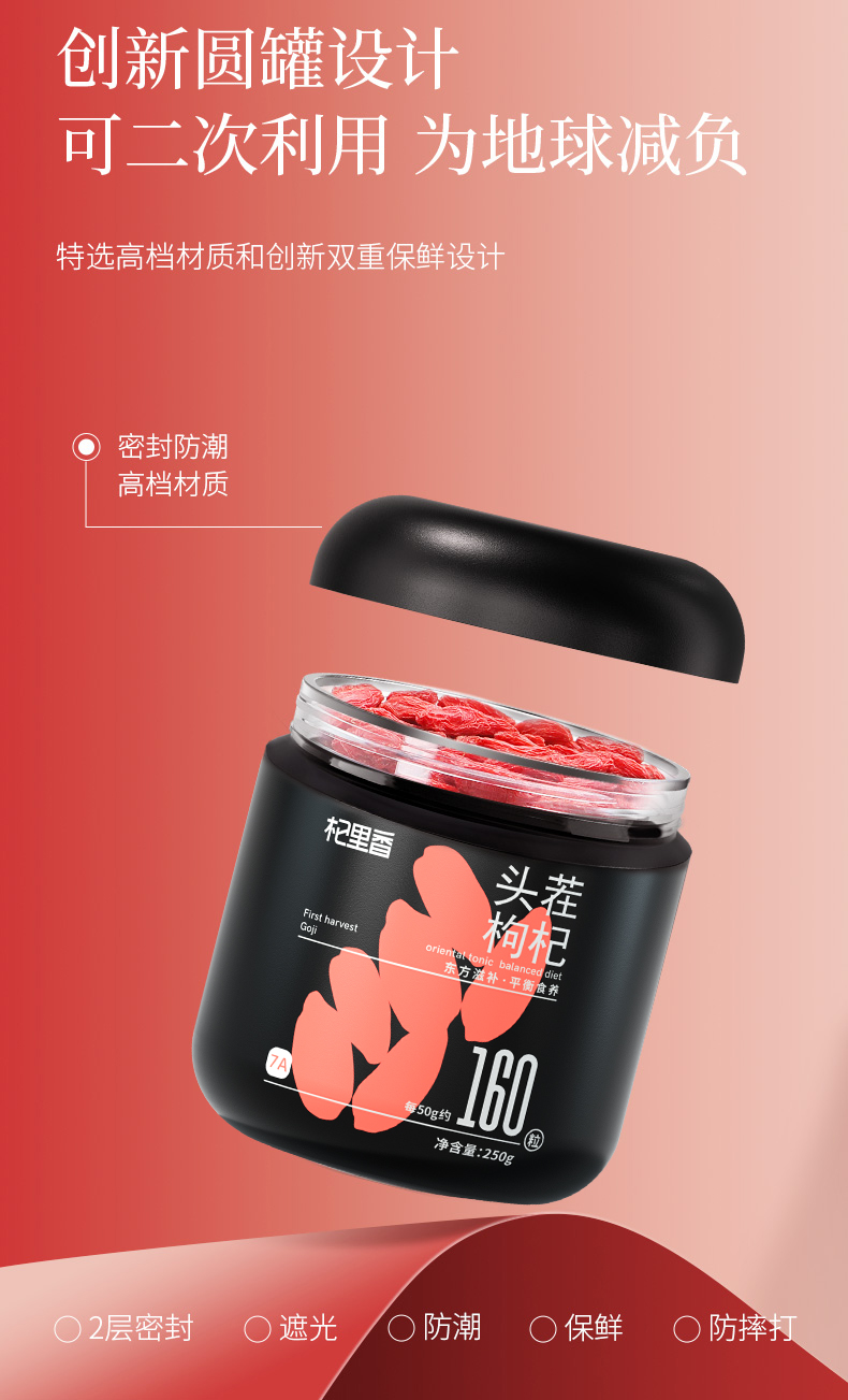 杞里香 红枸杞250g圆罐头茬枸杞 010127